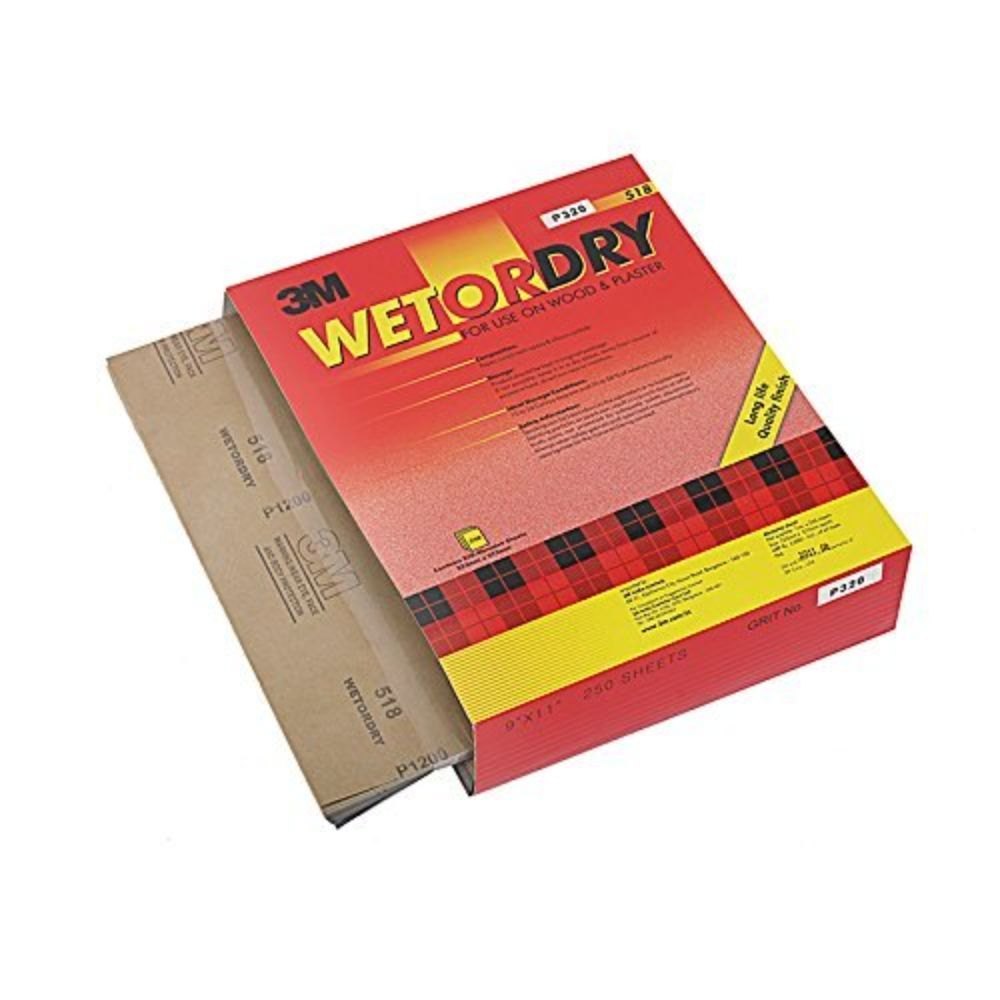3M™ Wetordry™ Sandpaper Sheet 518 features fast cutting silicon carbide on a strong backing , waterproof paper backing to provide superior finishing for both wet and dry applications on a variety of substrates, including wood or plaster.